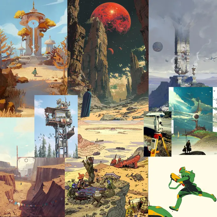 For my concept I was heavily inspired by the art of Calum Alexander Watt and his bold use of color and shape. I also felt inspired to create a more desolate world, utilizing atmospheric fog and texture to help distinguish the layers of my scene.